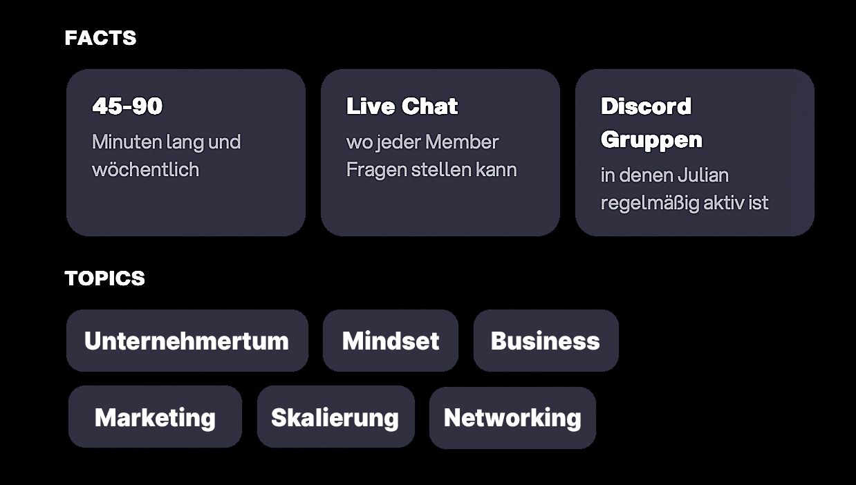 Wöchentlich, 45–90 Minuten: Julian liefert exklusives Wissen, aktuelle Unternehmer-Insights und persönliche Einblicke.