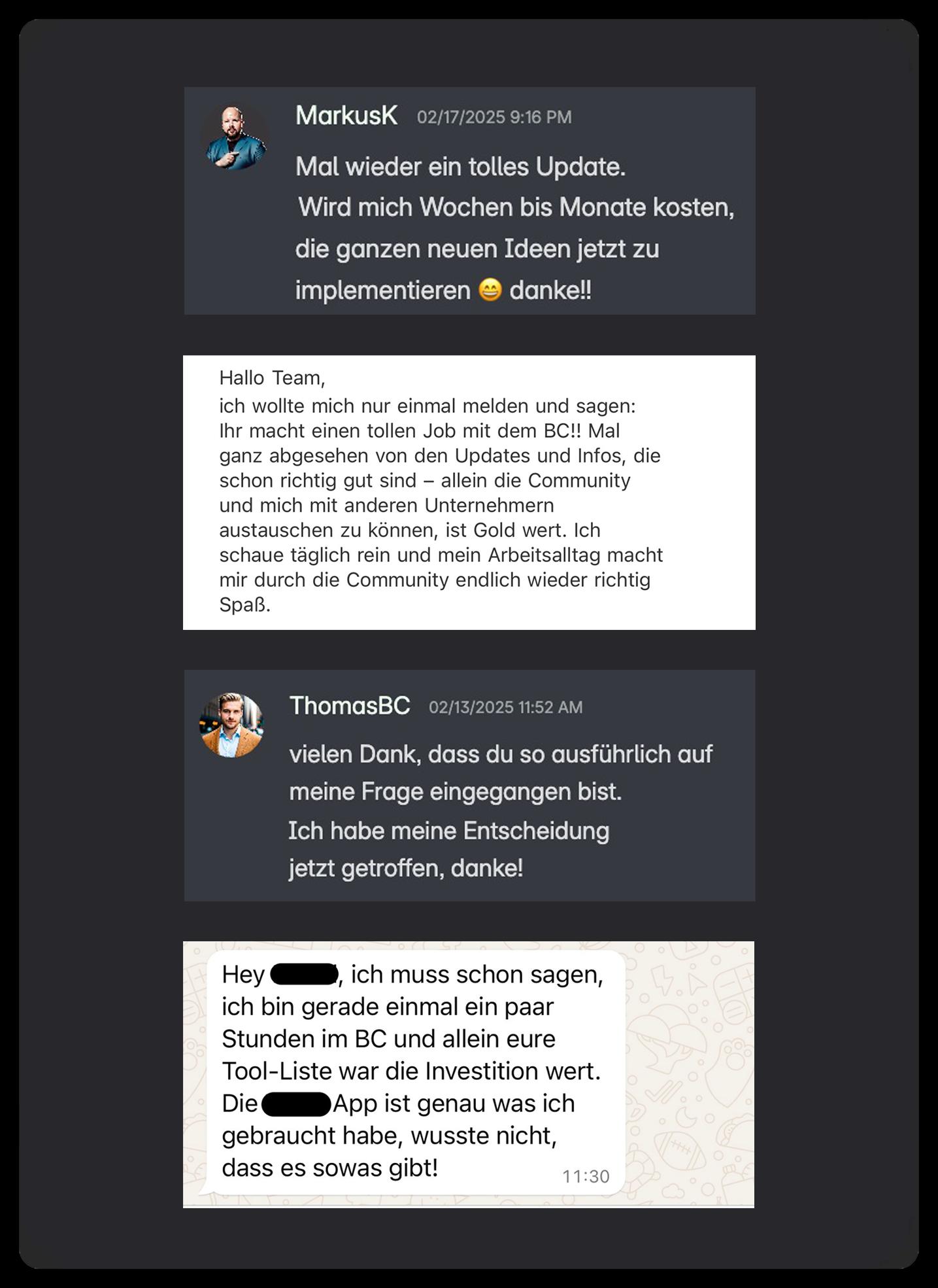 Jetzt hast du Zugang zu einem Umfeld, das dich fordert, fördert und weiterbringt mit klaren Strategien, ehrlichem Austausch und messbaren Ergebnissen.