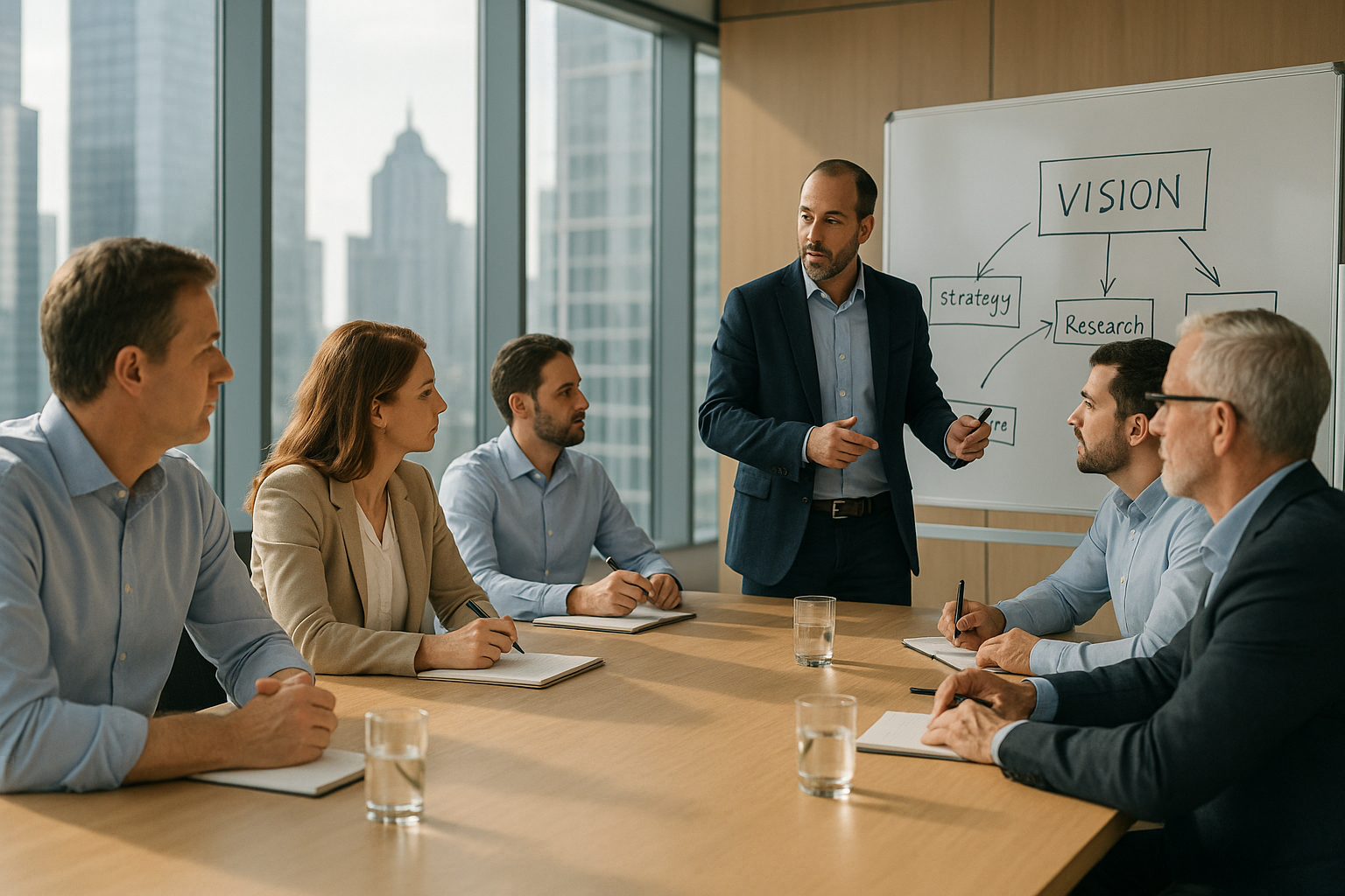 Du verlierst dich nicht mehr in Details. In den Strategiemeetings mit Julian und den anderen Elite-Unternehmern geht es um die Hebel: Vision, Wachstum, Partnerschaften und die Entscheidungen, die dein Unternehmen wirklich nach vorne bringen.