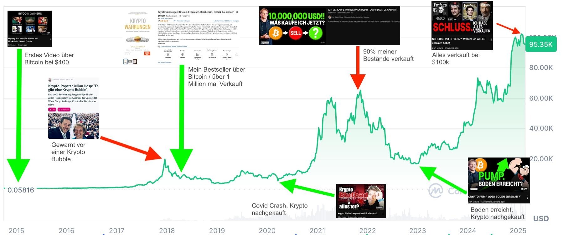 Vor zwei Jahren hat Julian live 161 Bitcoin aus einer seiner Positionen erfolgreich verkauft. Dieser Verkauf war Teil seiner strategischen Vermögensverwaltung und zeigt, wie wichtig es ist, den richtigen Zeitpunkt zu erkennen und Entscheidungen auf Basis fundierter Marktanalysen zu treffen.