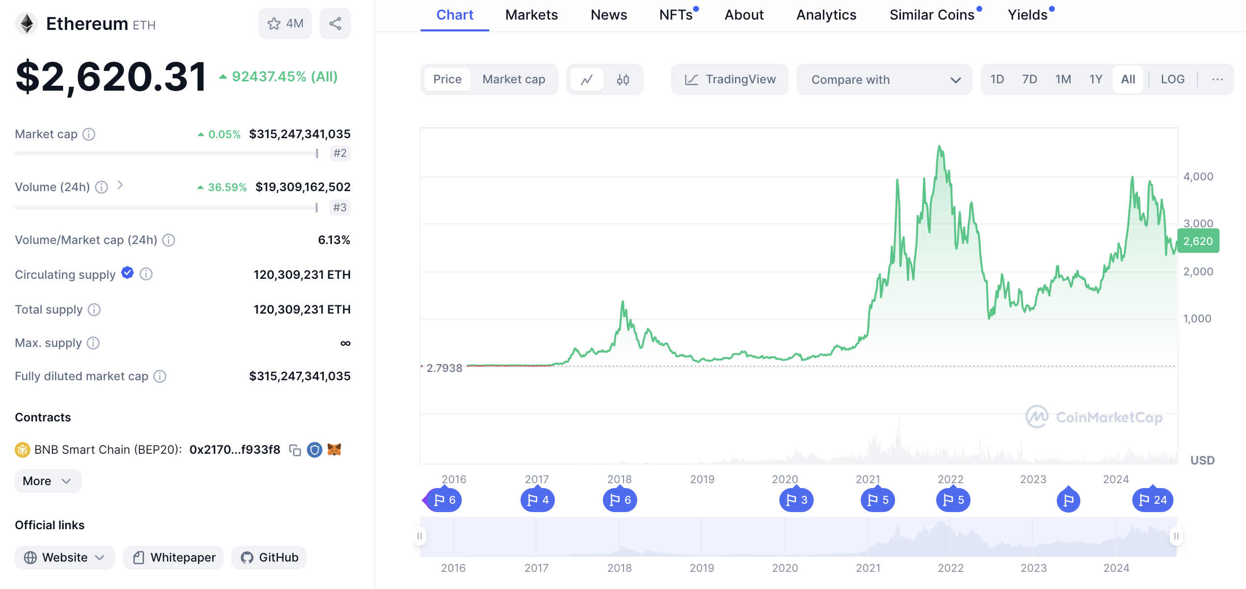 Julian hat seine erste Investition in Ethereum getätigt, als der Preis bei nur 8 Dollar lag. Heute steht Ethereum bei über 2500 Dollar – das entspricht einer Wertsteigerung von mehr als dem 300-fachen.