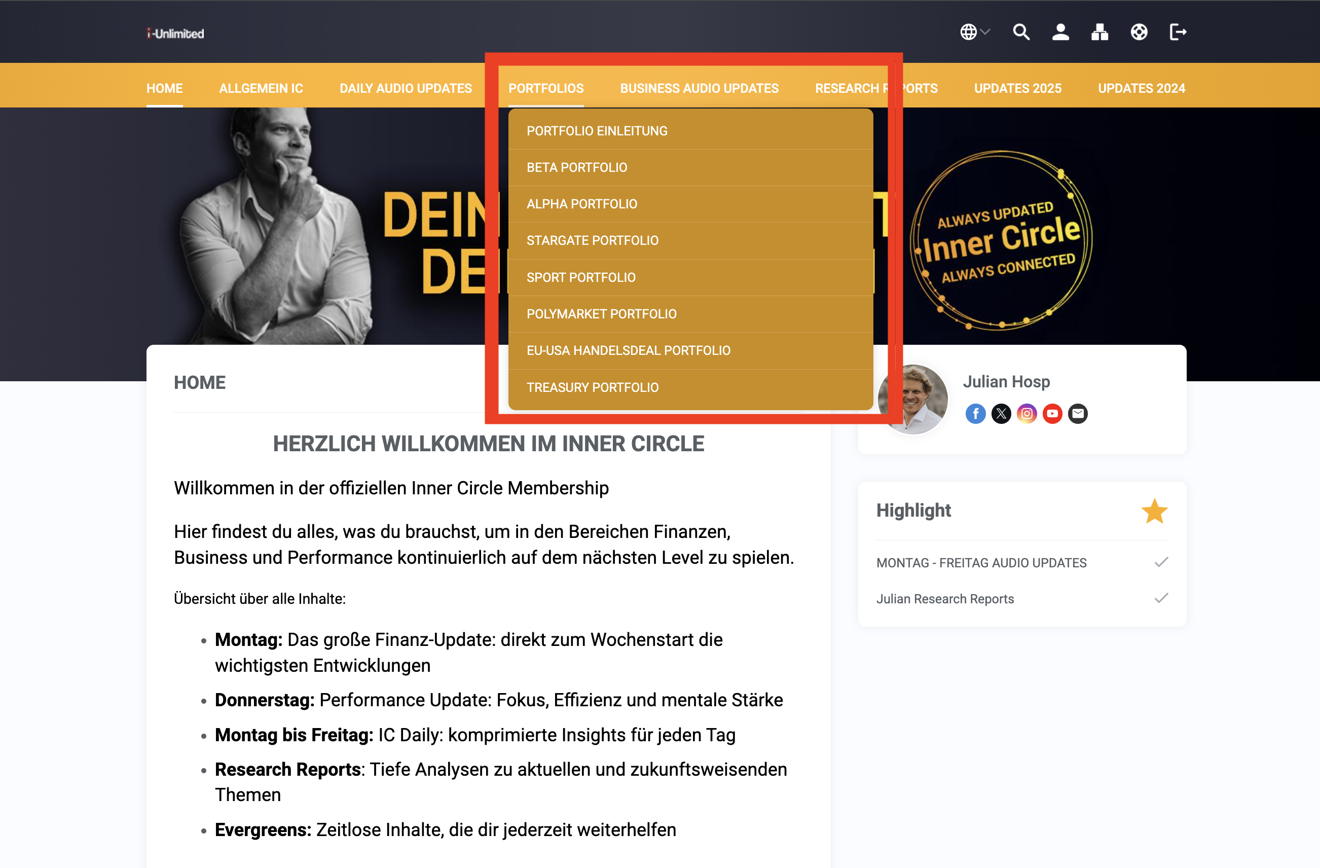 Mit deinem Zugang erhältst du sofortigen Zugriff auf unsere Membership und die exklusiven Portfolios: