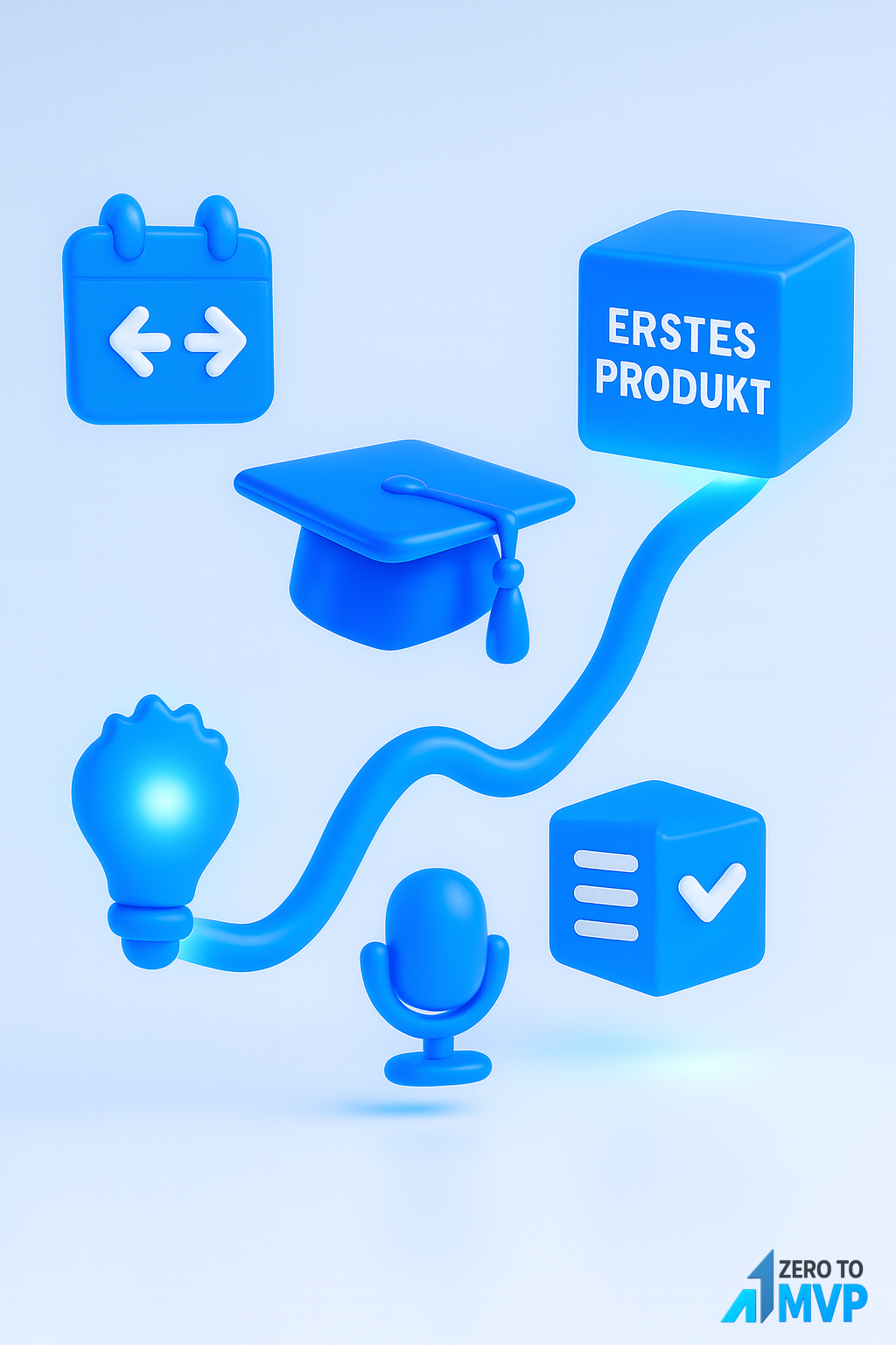 Du lernst, wie du aus einer Idee Schritt für Schritt dein erstes Produkt baust, vom Finden der richtigen Zielgruppe, über die Produktlogik bis hin zu Marketing und Pitch. Am Ende hast du nicht nur Wissen, sondern dein eigenes MVP in der Hand.